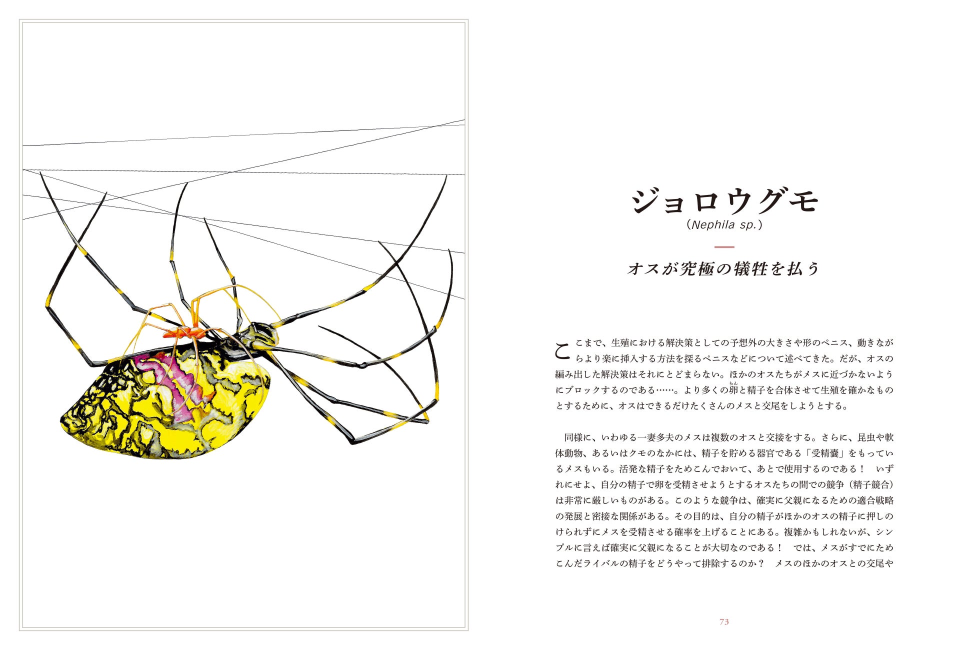4億年以上から、生物は生殖器の「最適化」と生殖の成功を目指し、戦略をたて、進化し続けてきた。種が繁殖するために、革新的な気管、オスとメスの間での闘争、オスの犠牲行為など多様な戦略が発達してきたが、動物界は依然としてまだまだ神秘に包まれている。本書の「はじめに」では、膨大な時間をかけて行われてきた、無数の生物の最適化戦略の全容をわかりやすく解説する。まずはここを準備体操とし、生物とその性の扉が開かれていく。