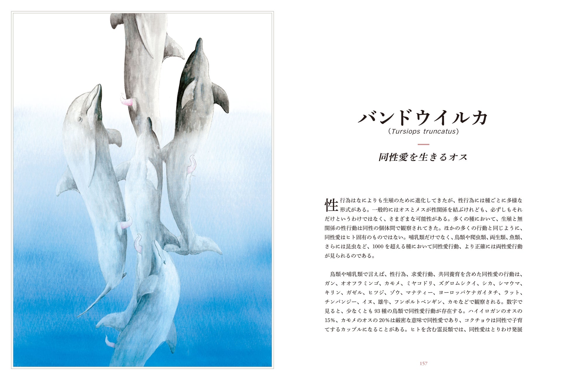 本書では、生物たちの快楽のための性行為や同性愛、タブーのない解放された性を生きる例も紹介する。なかには共生し種を保つために、性別や体の大きさを変えることができるものも登場する。私たちが常識として捉えていたことを覆すこれらの事実が伝えるのは、私たち人類は大河のほんの一滴でしかないということだ。「性の多様性」は人類誕生よりずっと前から存在しており、生きものはその性を多様化しながら、困難に対する最適化戦略をとり、並外れた適応を行ってきた。その実現はまさに神秘だ。ヒトとしてその大河のなかに共に在ることの奇跡に感動してほしい。ゆりかごである地球環境に抗うことなく生きてきた彼らへの尊敬と愛情を育むきっかけとなることを望む一冊だ。