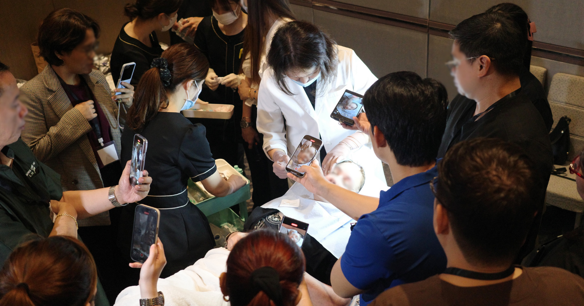名だたる名医が講師を務める中、最初に抜擢されたことは、吉田医師に対する高い信頼と期待の表れです。その技術を学ぼうと、セッション開始と同時に多くの医師が集まり、手技の的確さとスピードに驚きと称賛の声が次々と上がりました。男性講師が多い中でも、吉田医師の卓越した技術は際立ち、参加者全員に強い印象を残しました。セッション後には、多くの医師に勇気と刺激を与え、会場は盛大な拍手に包まれました。