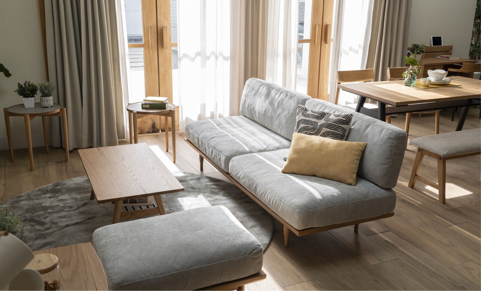 2Pとシェーズを組み合わせて、ゆったりとくつろげるカウチスタイルに。