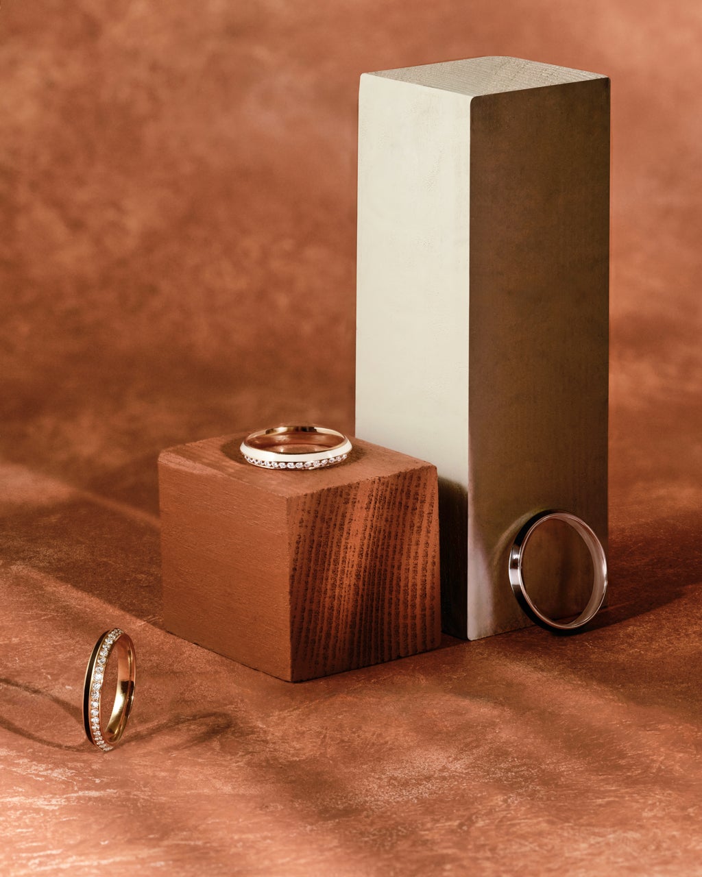 今回のコレクションでは、ユニセックスで着用できる6つの新作デザインが登場。さらに、人気の定番デザイン「テゼ デュオ」と「アリアンヌ パヴェ」もそのスタイリングを新たにし、リングの中央部分にダイヤモンドを加えることでリングそのものの強度を上げると共に更なる美しさを実現しています。