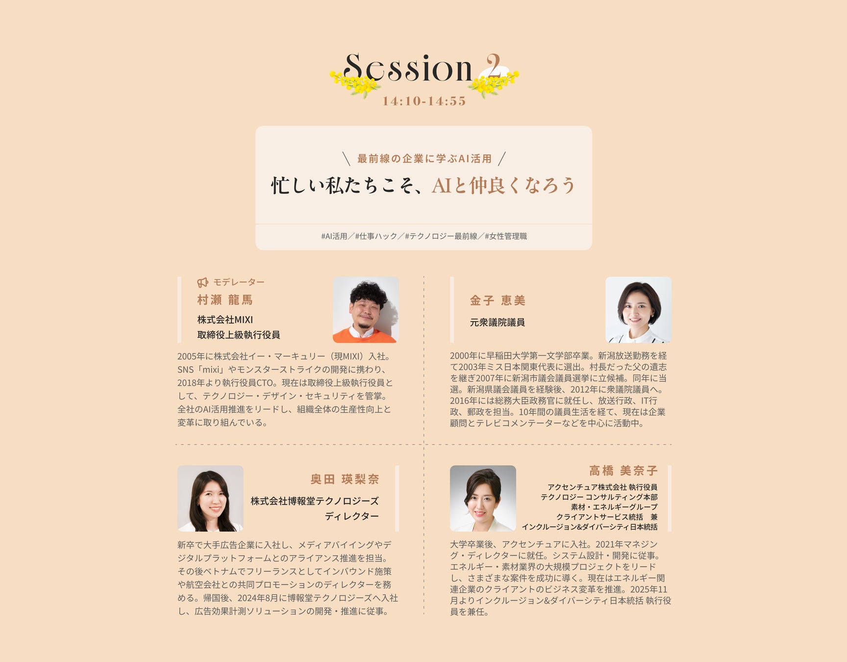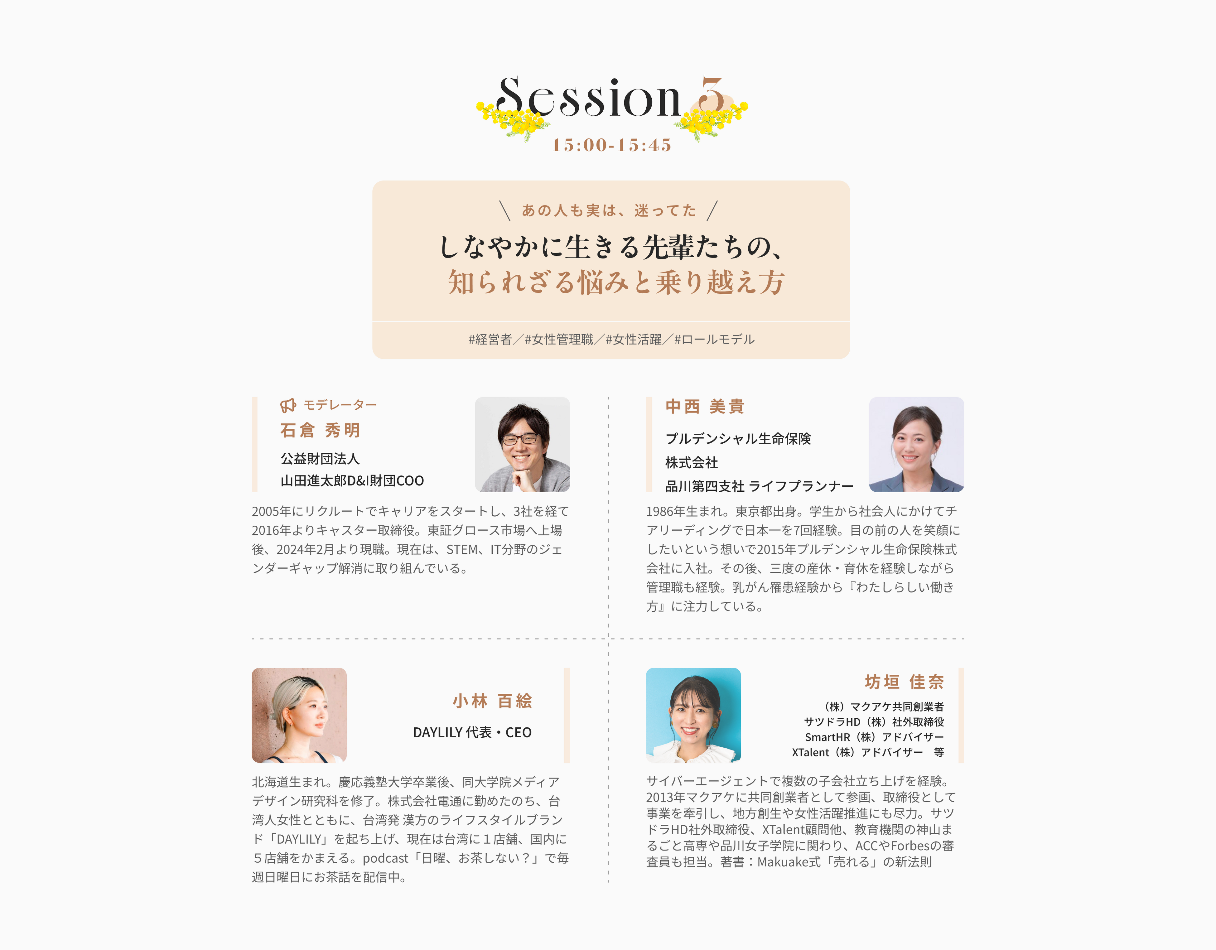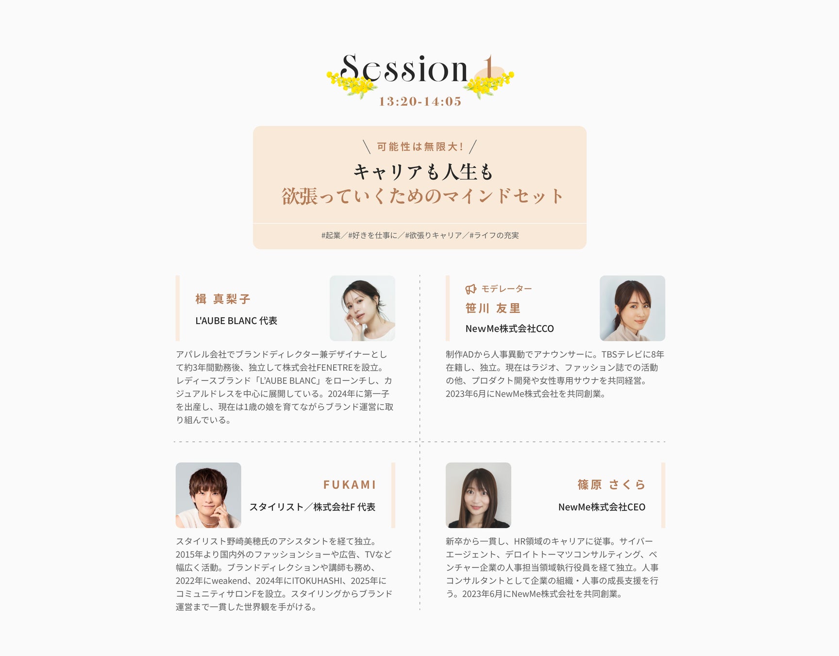今回の大型イベントは、国際女性デーに先駆けて開催。20-40代の働く女性を中心に、そういった出会いやきっかけを見つけていただきたいと考えています。