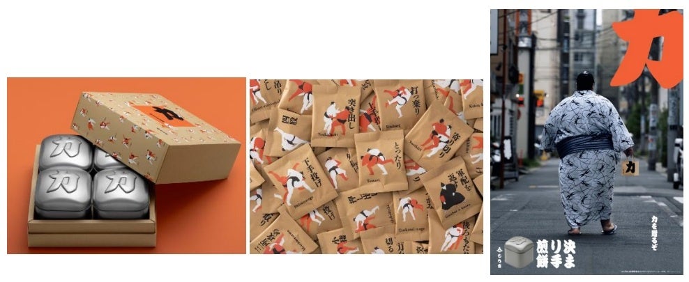 商品の総合監修は日本を代表するデザイナー「原 研哉(はら けんや)」氏が務めており、相撲の決まり手“八十二手”すべてが掲載されている「決まり手帖」や、相撲の力強さを表現し、素材に日本製鉄株式会社のCO2削減素材(GXスチール)「NSCarbolex® Neutral」を使用したブリキ缶(スチール缶)など、相撲の世界観やもち吉のこだわりが随所にみられる商品となっております。