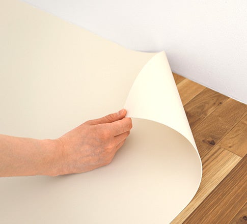 クッションフロアの裏側は弱粘着加工となっており、ピタっと貼れてはがすことができます。
