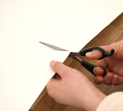 一般的なクッションフロアよりも薄い、約1.2mmの厚み。やわらかい素材なのではさみでのカットや微調整がしやすく、トイレの床施工にも最適です。