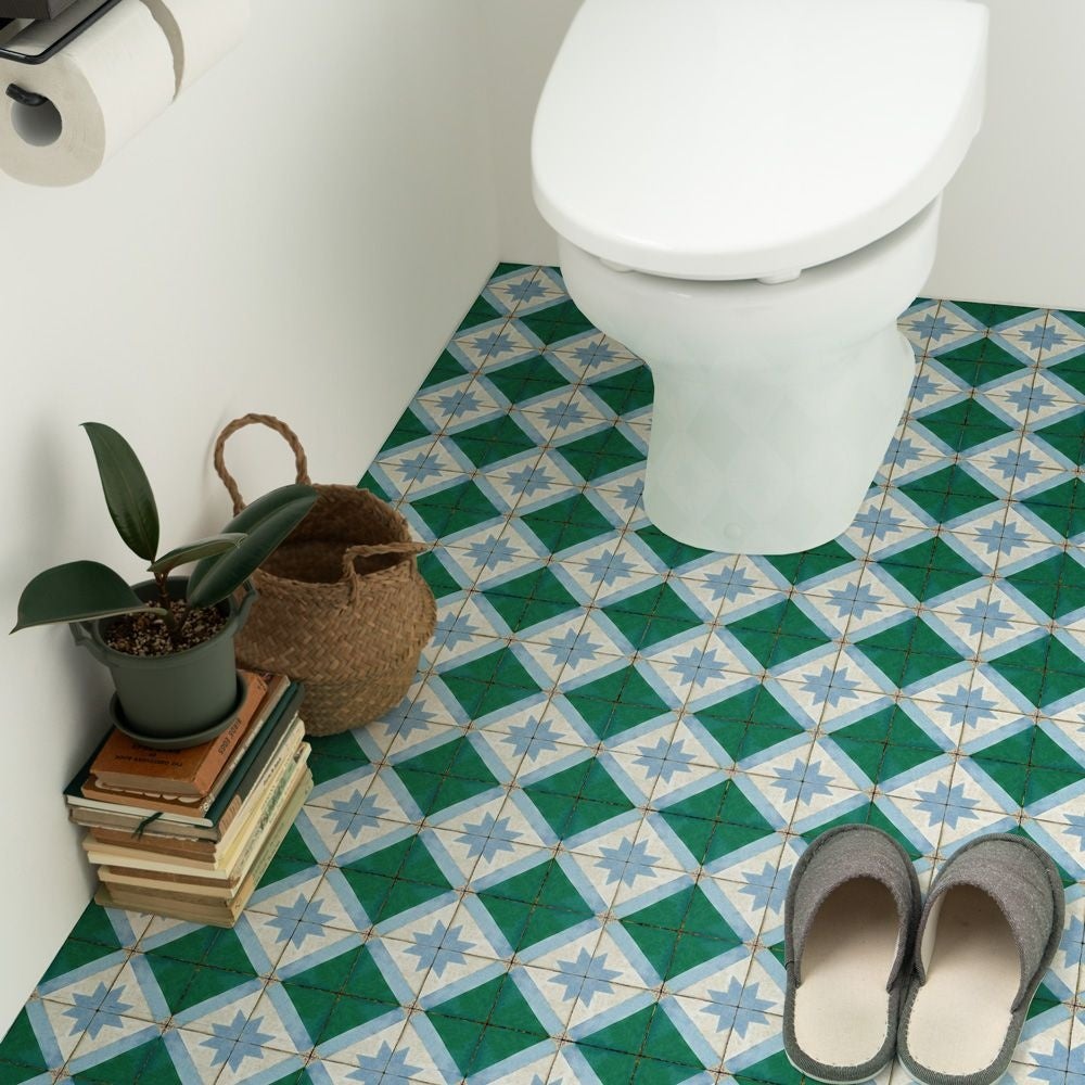 柄がつながるようにデザインされているため、複数枚つなげて大きめのトイレにも対応できるほか、洗面所やキッチン、その他のスペースにも利用できます。