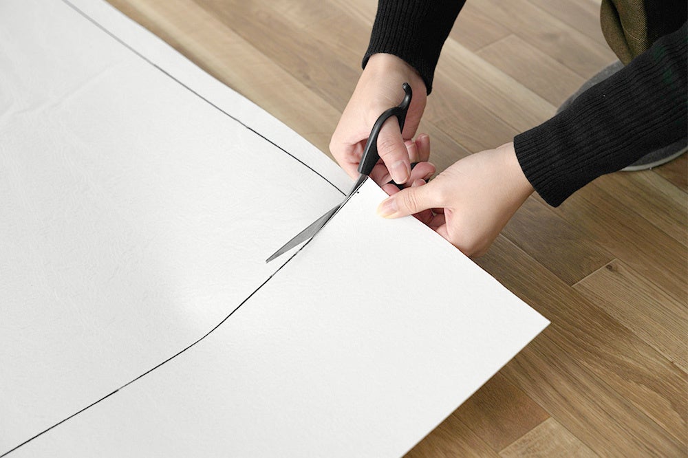床の型紙を作ってからクッションフロアをカットすると、失敗しにくくおすすめです。