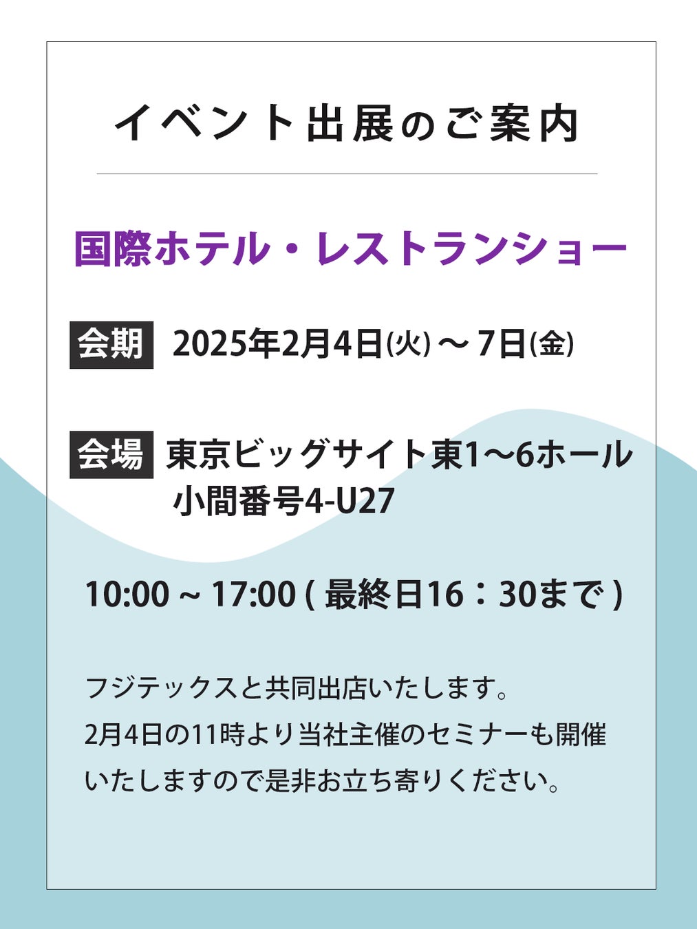 2025年2月4日~7日、東京ビックサイトで開催される『国際ホテル・レストラン・ショー』へ出展。