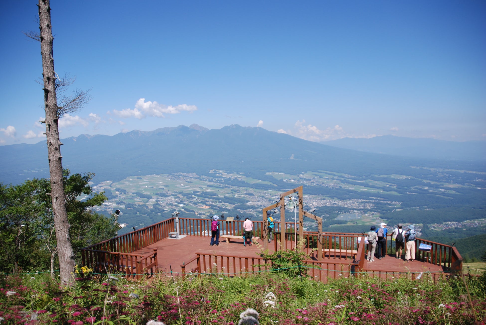 入笠山山頂は標高1,955メートルに位置し、八ヶ岳、富士山、南・中央・北アルプスなどが一望できる360度の大パノラマをお楽しみいただけます。