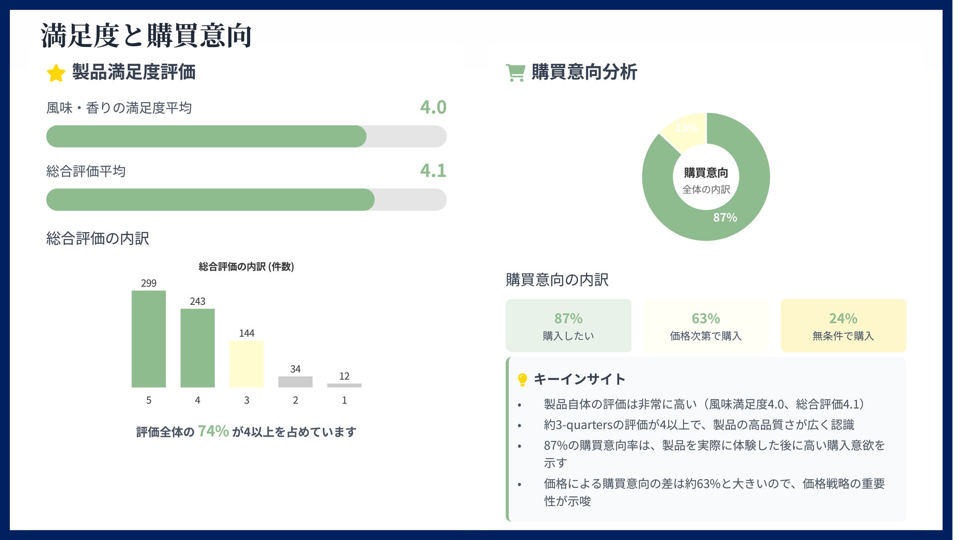 試食した消費者に対し、味や見た目だけでなく、「適正と感じる価格帯」「贈答用パッケージの好み」「購入意向」などを詳細にアンケート調査します。感覚的な「美味しい」を定量データとして
