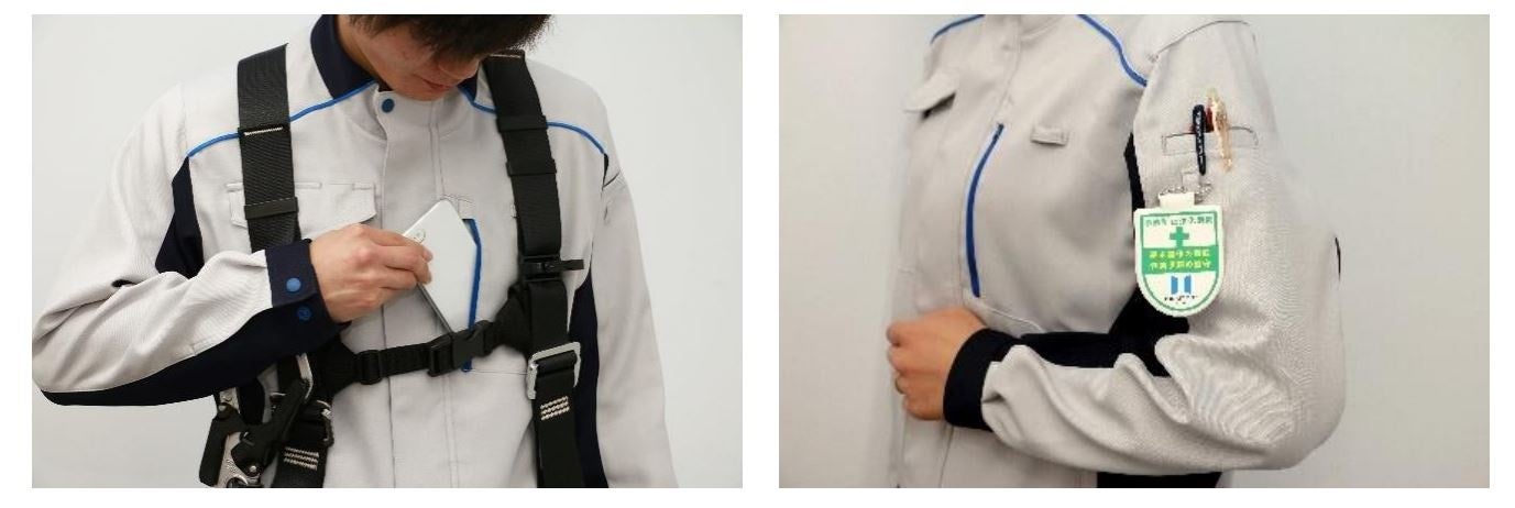 左胸や左腕にはループを取り付け、名札や腕章位置を統一、左腕には新たにペン差しを設けるなど、機能性を大幅に向上させました。
