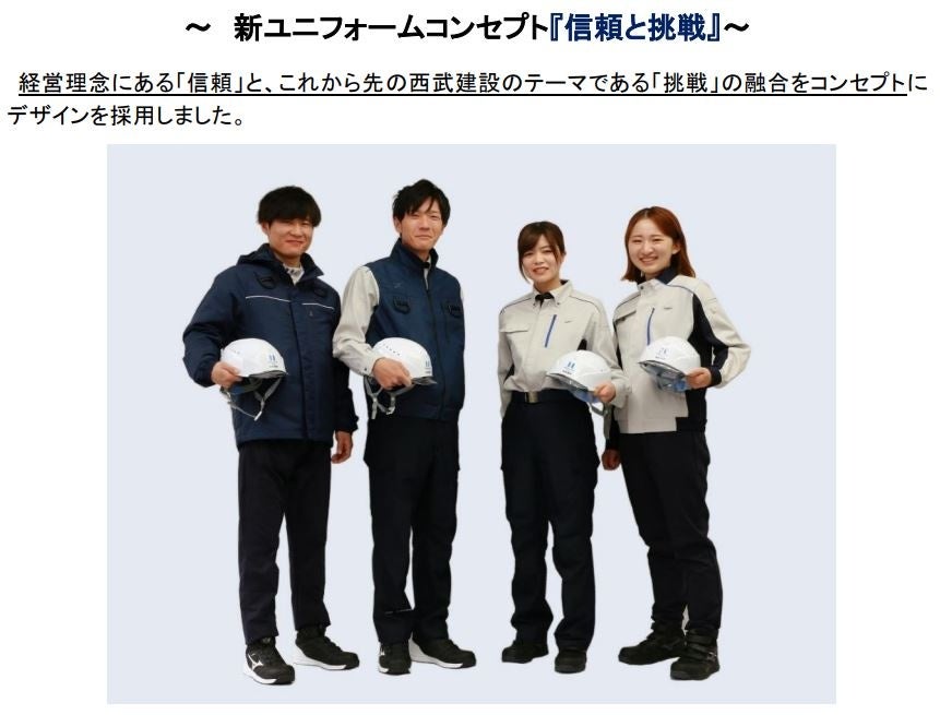 今回の新ユニフォーム導入により、もっと快適に仕事に取り組める環境を社員へ提供するとともに、ものづくりを通してワクワクする未来を共創し、西武建設がステークホルダーの皆様から信頼される企業であり続けるよう、これからも挑戦を続けてまいります。