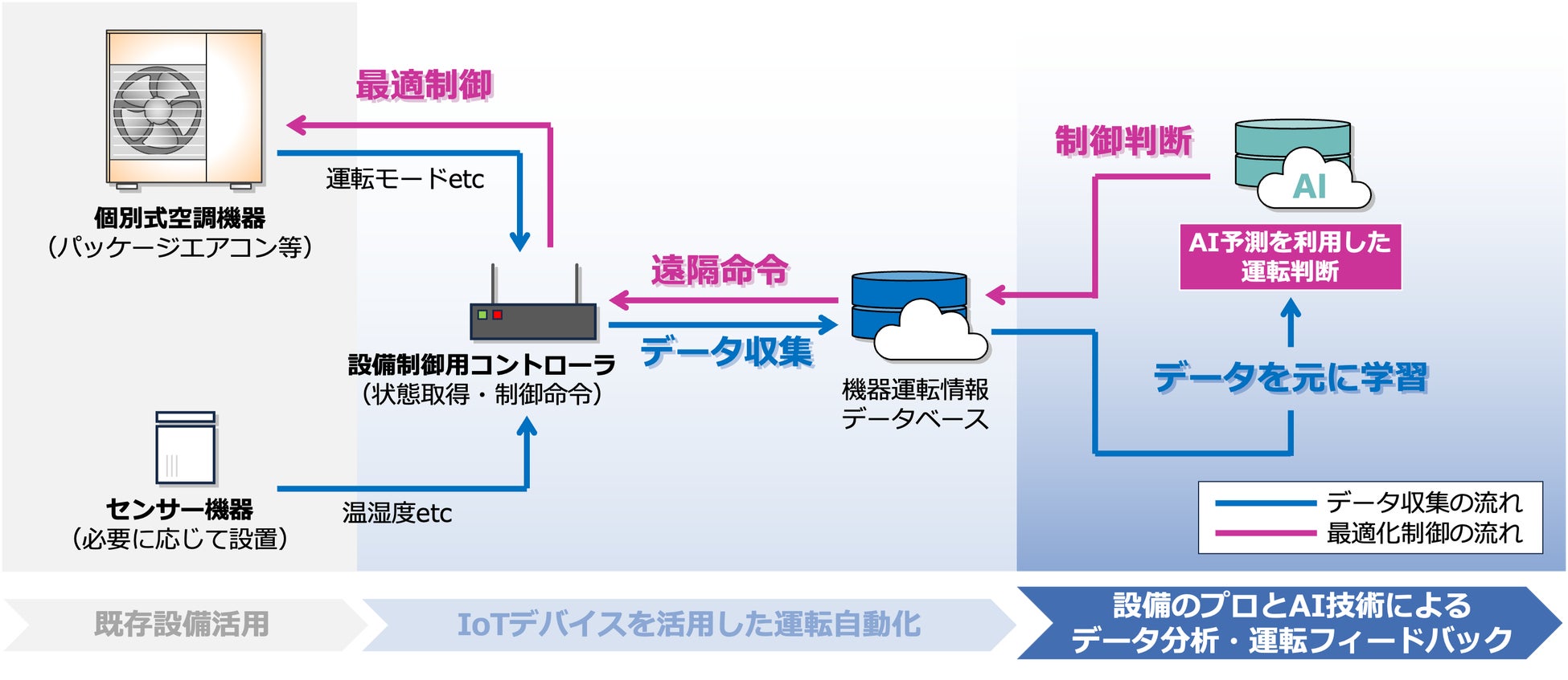 3)制御値の最適化:運転実績データの蓄積に応じて、制御値の最適化を行い運転効率を向上