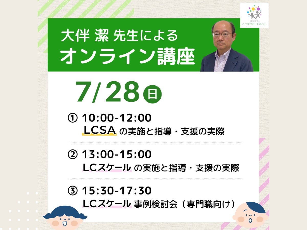 2024年7月28日、一般社団法人ことばサポートネットは「LCSAの実施と指導・支援の実際」「LCスケールの実施と指導・支援の実際」ならびに「専門職向けLCスケール事例検討会」を開催いたしました。