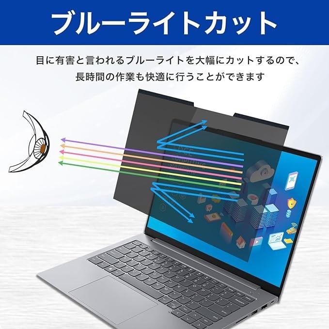 ブルーライトはディスプレイが発する光の中の青いもので、あび過ぎると目の水晶体や角膜に吸収されずに綱膜の機能のを低下を引き起こす場合があると言われています。