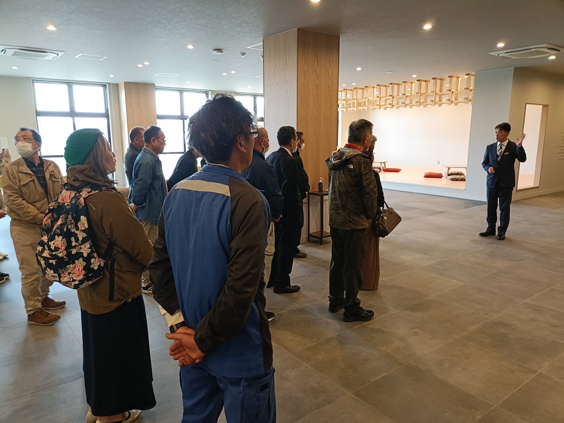 同日午後には、第二部として衣川地域の住民を中心とした招待者約25名をお迎えし、地域住民向け内覧会も実施。地域の皆さまに直接施設をご覧いただき、旅館が地域に開かれた存在であることを体感していただく時間となりました。