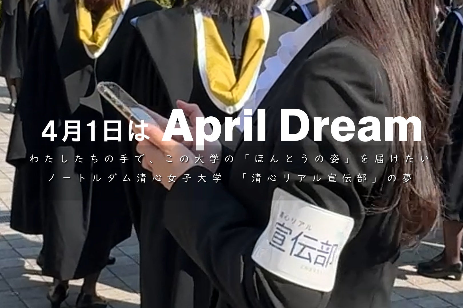 ノートルダム清心女子大学は、4月1日を夢を発信する日にしようとするApril Dreamに賛同しています。このプレスリリースはノートルダム清心女子大学 学生広報組織「清心リアル宣伝部」の夢です。