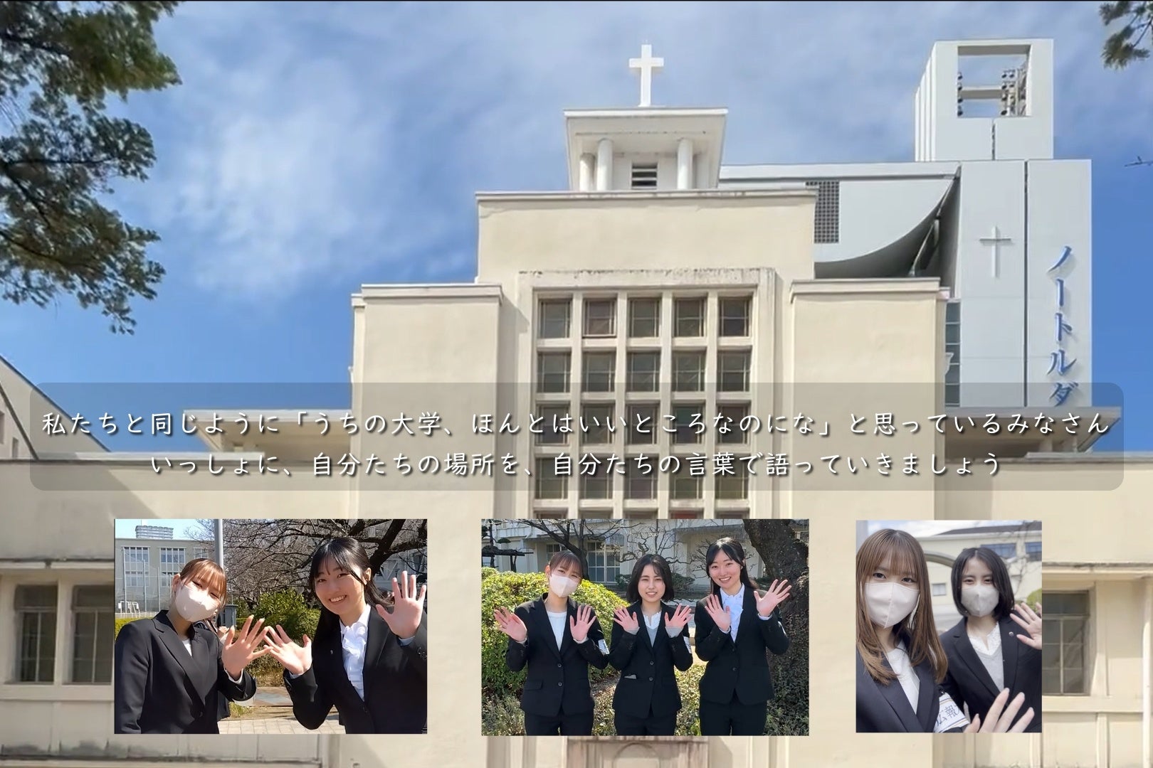 ノートルダム清心女子大学 広報室の学生スタッフ組織として2026年2月に発足。新2・3年生6名で活動中。Instagram等のSNS発信や動画制作を通じて、大学の「ほんとうの姿」を学外へ届けることを目指しています。4月より新メンバーを募集予定。