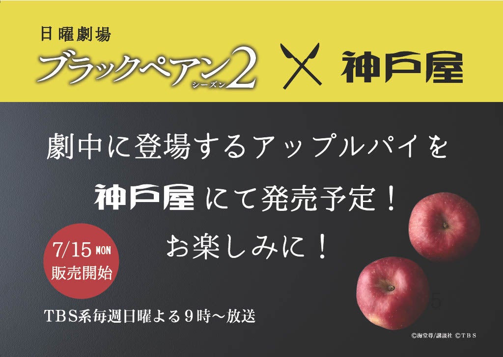神戸屋がTBS系日曜劇場『ブラックペアン シーズン2』とコラボレーション!劇中に登場予定のアップルパイを再現し7月15日(月)から直営店で販売!
