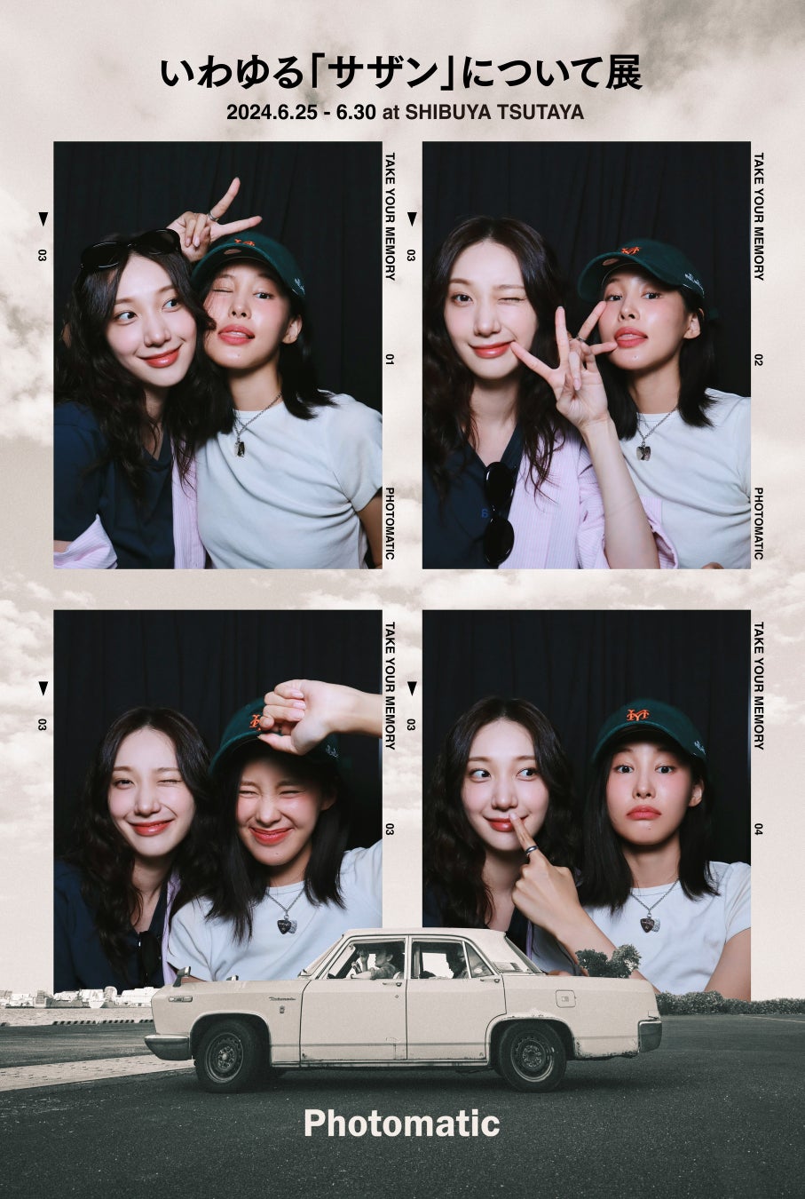 『いわゆる「サザン」について展』は、今週6月25日(火)に、オリジナルアルバムの今冬リリースと新曲「恋のブギウギナイト」の配信、ライブイベントへの出演などを発表し大きな話題を呼んだサザンオールスターズと、今年8月に出版されることになった、サザンオールスターズの活動を長年にわたり追い続けてきた音楽評論家の小貫信昭氏による書籍『いわゆる「サザン」について』(水鈴社刊)が連動する形で、著書から一部抜粋された文章と、貴重な写真・映像と共にサザンの歩みを体感できる特別展示です。Photomaticと『いわゆる「サザン」について展』がコラボレーションしたフォトフレームには、イベントのキービジュアルがデザインされています。このデザインは、つい先日発表されたばかりのサザンオールスターズの新ビジュアルと同じく、自動車に乗るサザンオールスターズを写真で収めたものであり、書籍『いわゆる「サザン」について』(水鈴社刊)の書影としても使用されています。サザンオールスターズの新ビジュアルの世界観の中でPhotomaticの撮影をお楽しみください
