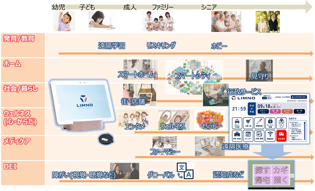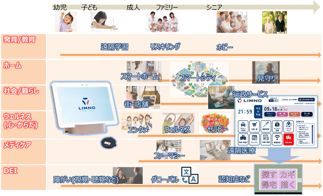 当社はこれまでも、幼児・子ども・学生向けの通信教育用端末をはじめ、通信カラオケ用端末、テーブルオーダー端末などを通じて、皆さまの快適・安心安全な暮らしをサポートして参りました。今後も、幼児からシニアまで、そして個々の多様性にもお応えしながら、人生100年時代とも言われる、お客様の生涯に寄り添うソリューションを提供して参ります。
