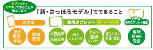 新・さっぽろモデル事業は、国のデジタル田園都市国家構想交付金を活用し、特に高齢化が進む札幌市厚別区もみじ台・青葉エリアを対象に、タブレットなどを通じて生活支援や健康増進、コミュニティ活性化などのサービスを提供する事業です。