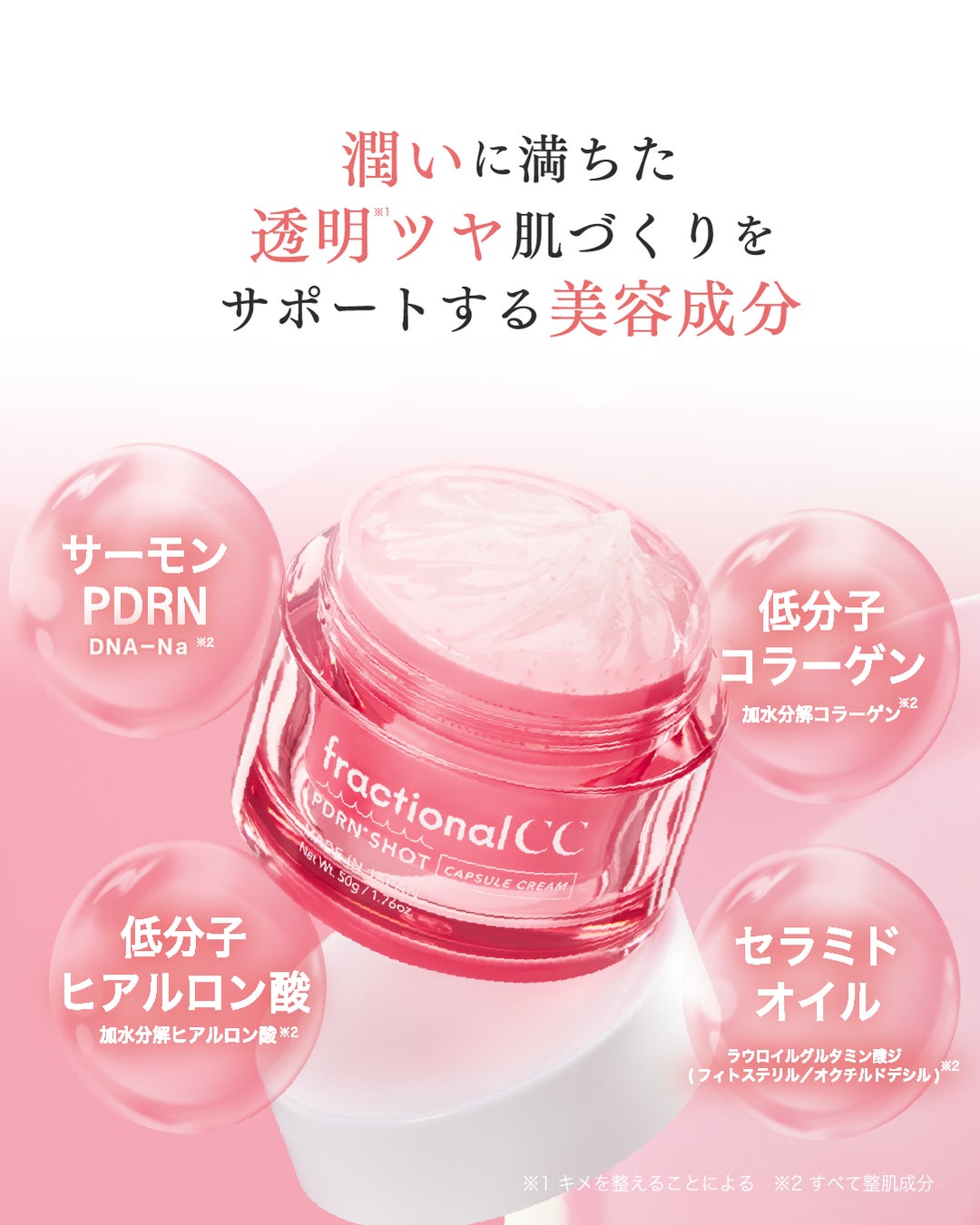 スキンラボ株式会社(東京都中央区)が展開する”美容医療発想””から生まれたメイドインジャパンのダーマコスメブランド「フラクショナルCC」は、肌の透明感※3を管理するトーニング※3ラインとして「PDRNショット 1000+」と「PDRNショット カプセルクリーム」を2025年2月末より順次発売いたします。本シリーズは、美容医療で注目されている「サーモンPDRN※1(Polydeoxyribonucleotide:ポリデオキシリボヌクレオチド)」を配合、肌細胞※5に働きかけ、透明感※3のあるハリつや肌を実現します。