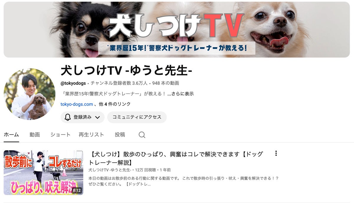 長年業界の最前線で培ってきた犬のしつけトレーニングのノウハウや知見を、「誰でもわかりやすく、有益な情報発信」をモットーに発信。「褒めるしつけ」を軸に、家庭で今すぐ実践できるトレーニング動画(例えば「間違った褒め方5選」など)を中心に、保育園・しつけ教室の様子を写した“現場カメラ”や、イベント裏側、愛犬とのお出かけVlog、海外ドッグカルチャー紹介動画など多彩なラインナップをアップしています。