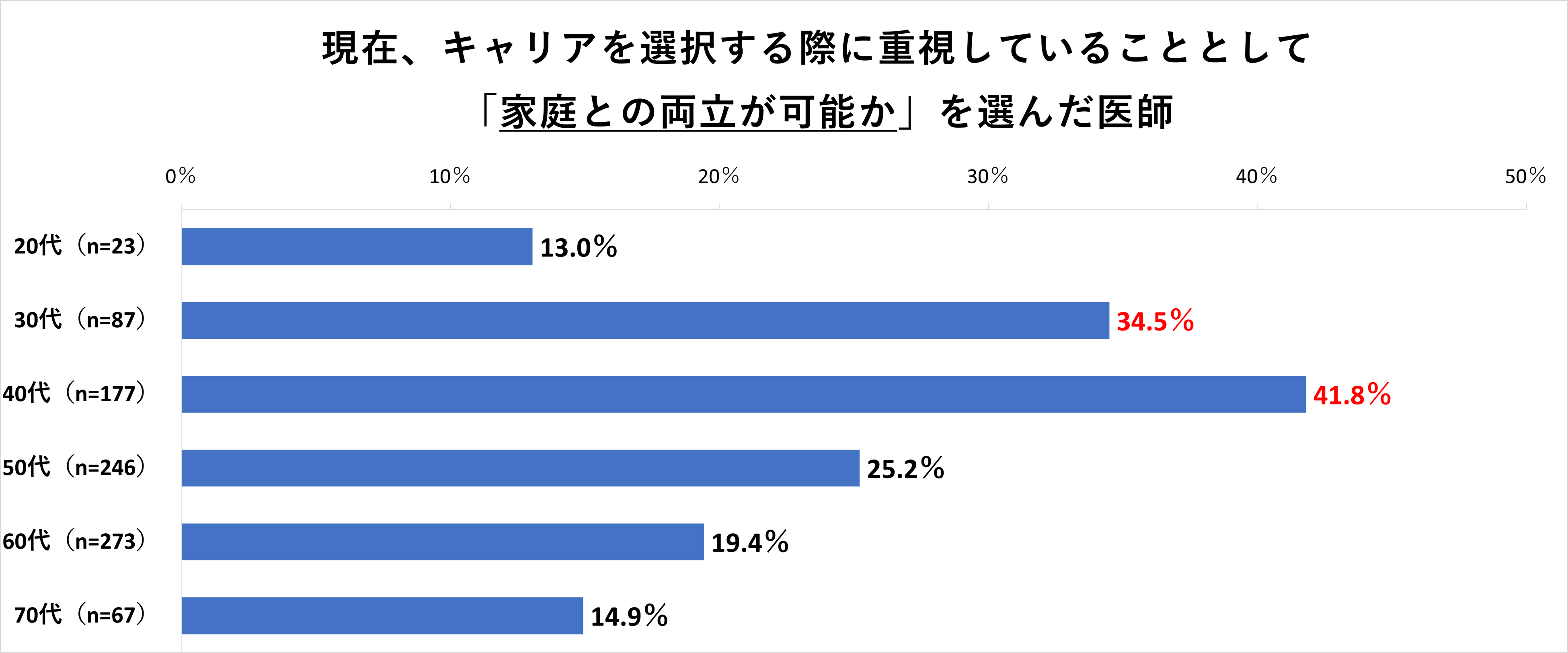 ・20~40代では約4割超がキャリアに迷いを抱えている。30代は専門医取得や勤務先選択などで将来に迷いを抱く時期であることが背景にある