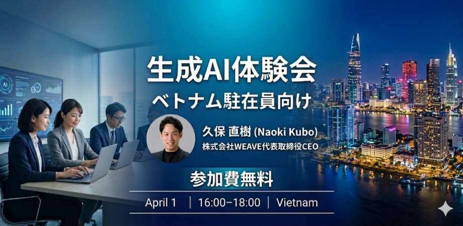 株式会社WEAVE(本社:広島県、代表取締役CEO:久保直樹)は、シンガポールおよびベトナムにて、海外駐在員向けの生成AI体験型研修を実施しました。参加者の満足度は5点満点中4.89、さらにアンケート回答者の100%が「すぐに業務で活用したい」と回答しました。日本企業で生成AI活用が進む中、海外拠点との「AI活用格差」という課題に対する実践的な取り組みです。