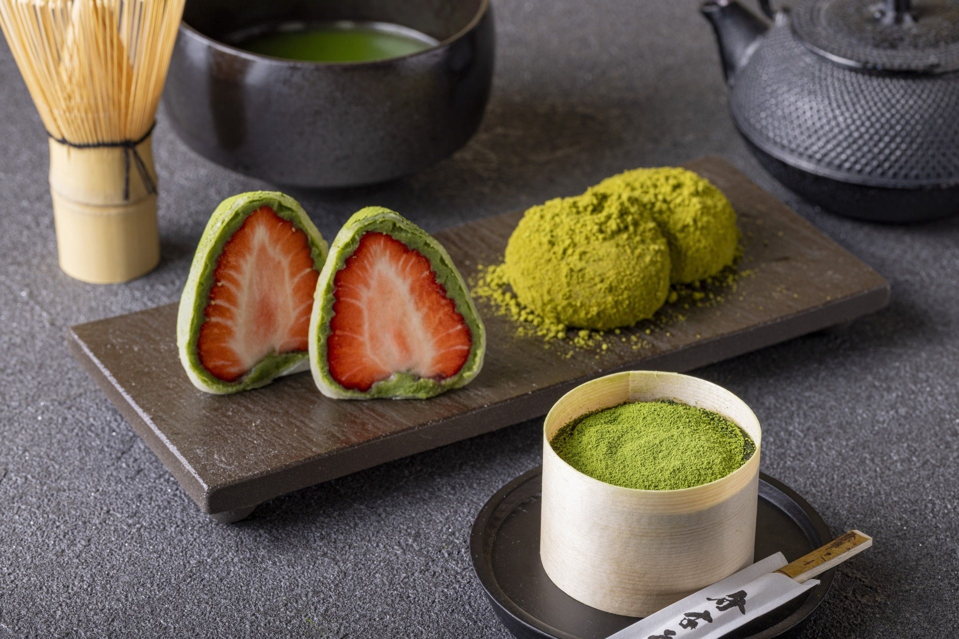 ※抹茶いちご大福4個セット(4,000円)、わっぱもち-抹茶-4個セット(2,890円)、砂利餅3種セット(5,100円)も同時発売。
