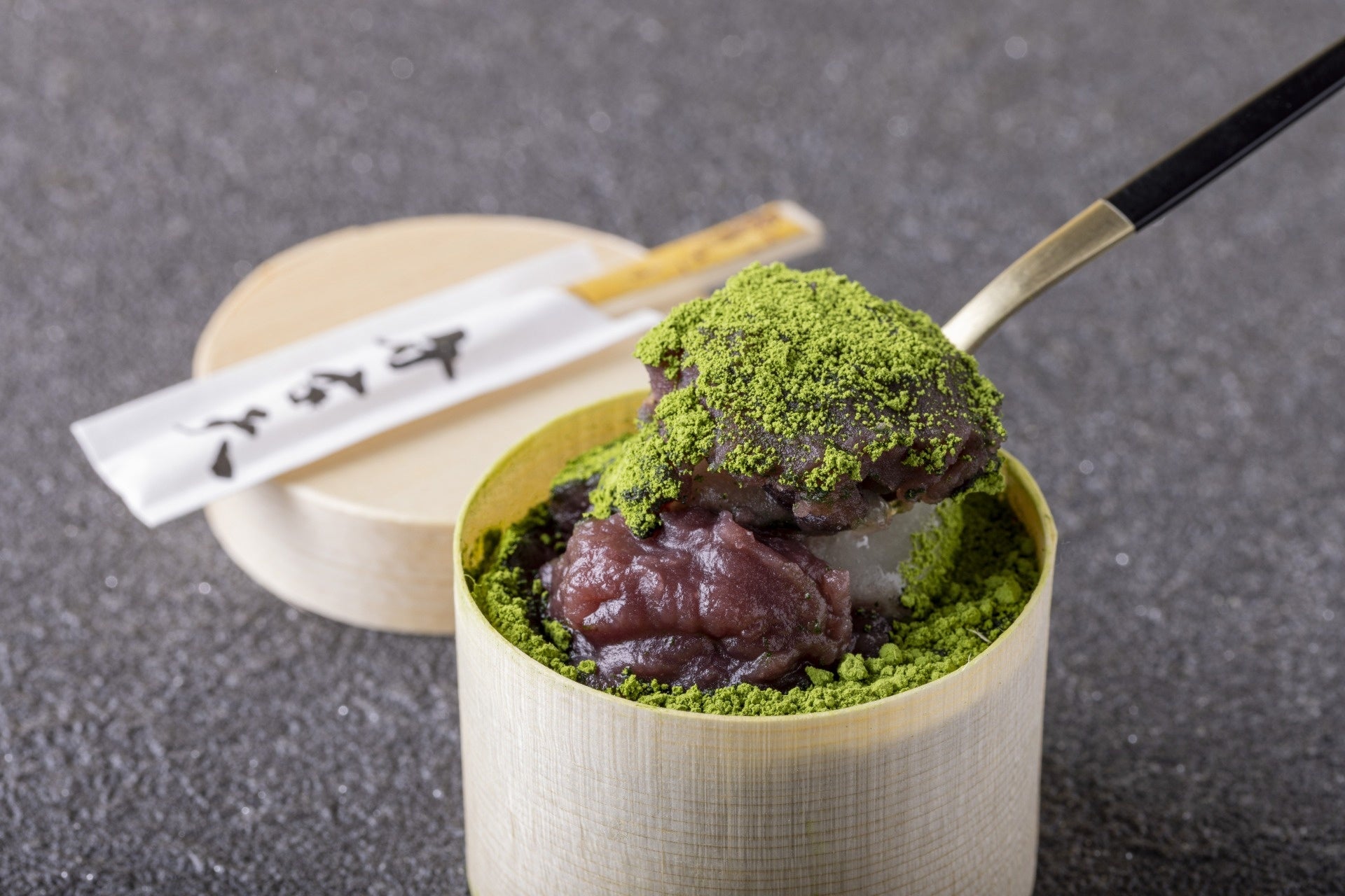 伸びのよいお餅に、甘さ控えめのこしあん、かのこ豆、そして”宮の森”を重ねた上質な抹茶の層が、上品でやさしい味わいを演出します。