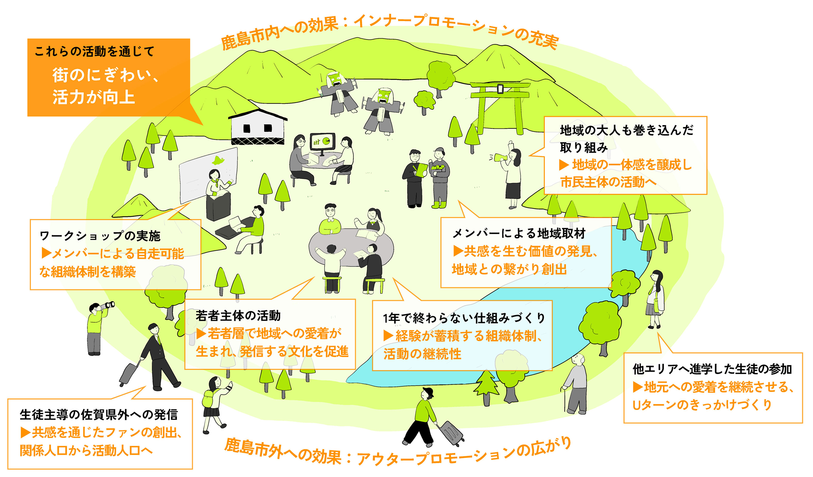 市制施行70周年をきっかけに、シビックプライドの醸成のための取組を推進しています。今回のプロジェクトを通じて、若い世代が鹿島市に興味を持ち、魅力を発信することで、鹿島ファンとなる、交流人口や活動人口を増やし、まちの賑わいづくりやコミュニティの活性化へつなげていきたいと考えています。
