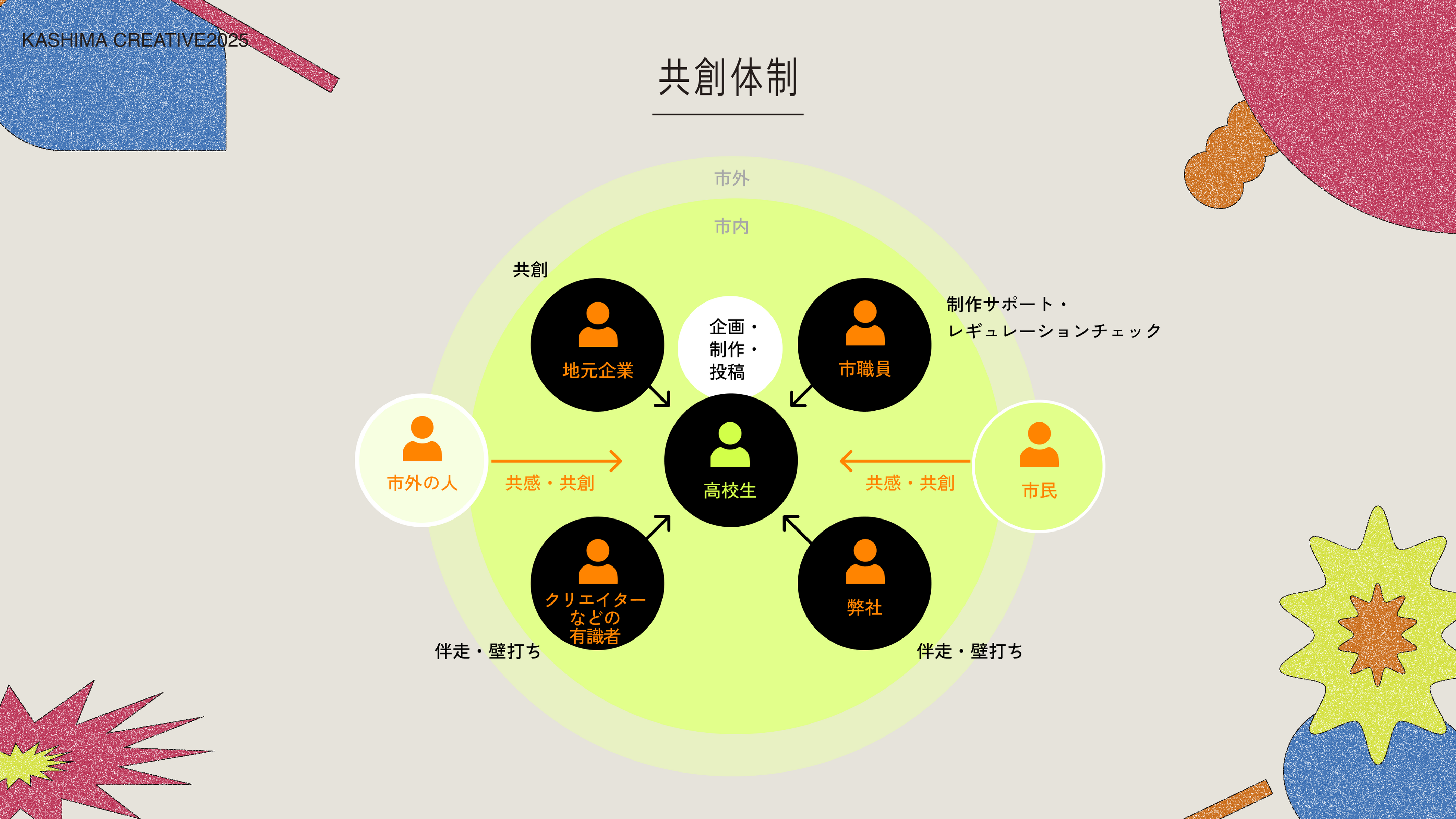 地元企業やプロのクリエイターである大人たちはサポーターとして高校生の活動を支援します。