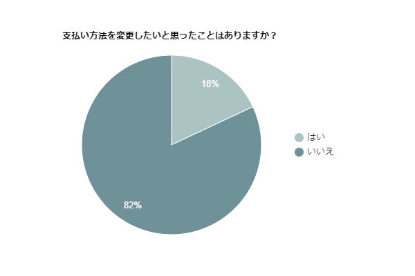 支払い方法を変更したいと思ったことがある方は18%にとどまり、電気とガスの支払い方法を統一している方が多く、現状の支払い方法に満足している方が多数を占めていることがわかりました。