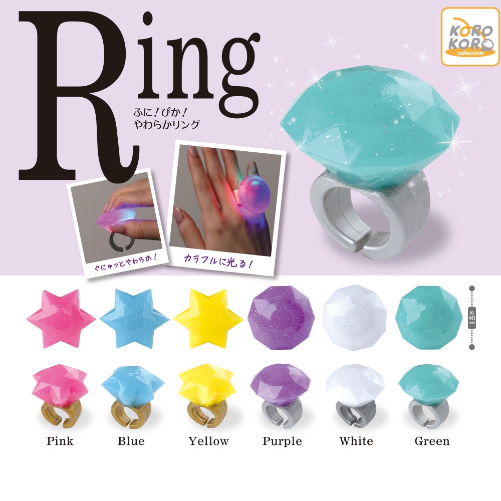 カラフルに光るやわらか素材のカプセルトイ「ふに!ぴか!やわらかリング」登場!