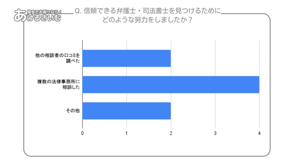 信頼できる弁護士・司法書士を見つけるために、どのような努力をしましたか?