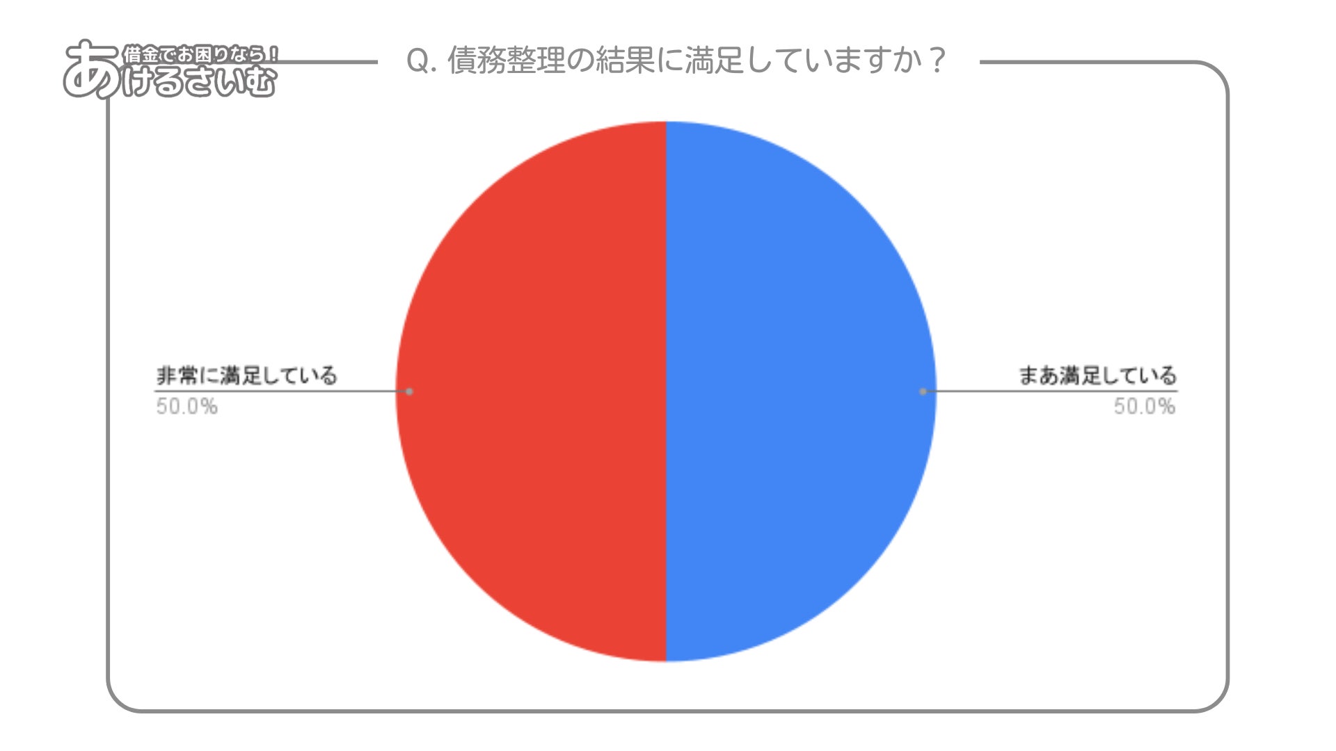 今回のアンケートでは、「債務整理の手続きや費用について十分な説明を受けた」と回答者全員が回答しました。