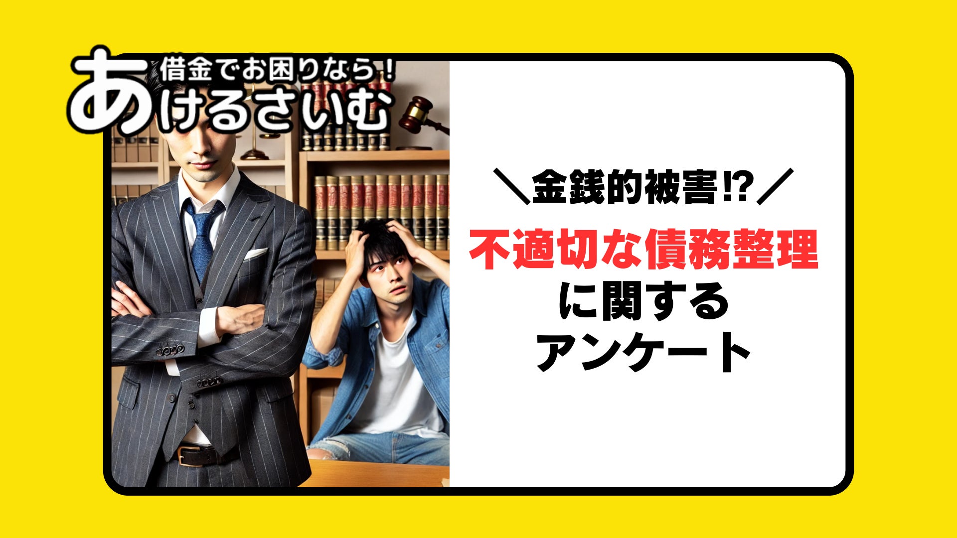 債務整理や闇金など借金問題をテーマとする情報メディア「あけるさいむ」では、2025年1月「不適切な債務整理」をテーマとしたアンケートを実施しました。
