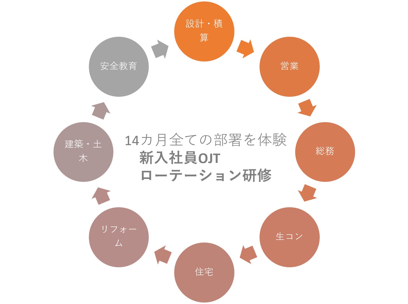 ・14カ月をかけてすべての部署を体験する「新入生OJTローテーション研修」を実施