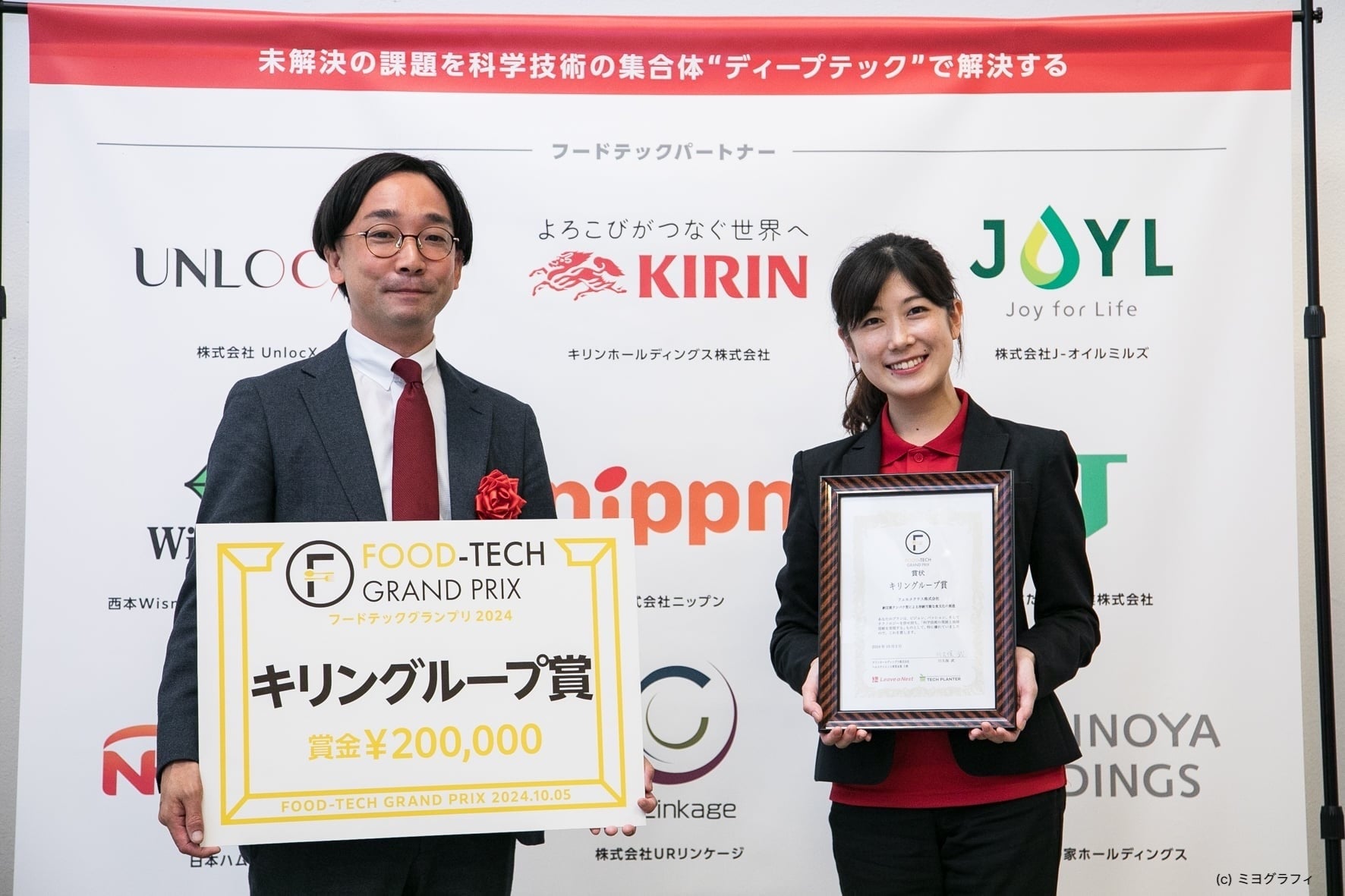 2024年10月5日(土)にフードテックグランプリ2024が開催され、フェルメクテスは336チームのなかから選ばれた12チームのファイナリストとして出場し、企業賞であるキリングループ賞と一般投票にて1位を獲得いたしました。
