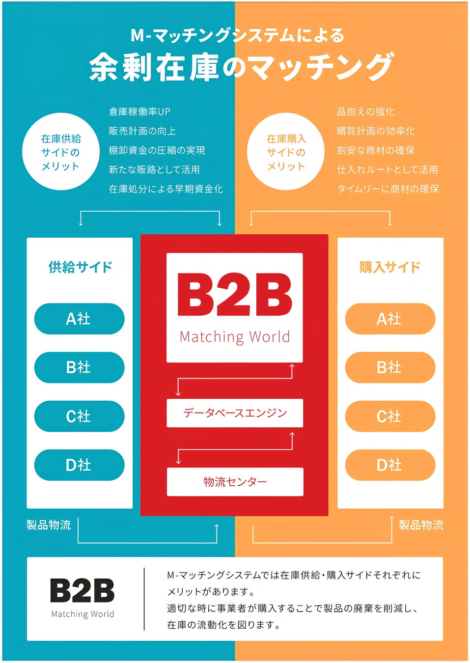 「M-マッチングシステム」は、マッチングワールド株式会社が提供する、完全匿名かつ小ロットからの発注が可能な会員制の卸売・仕入れサイトです。