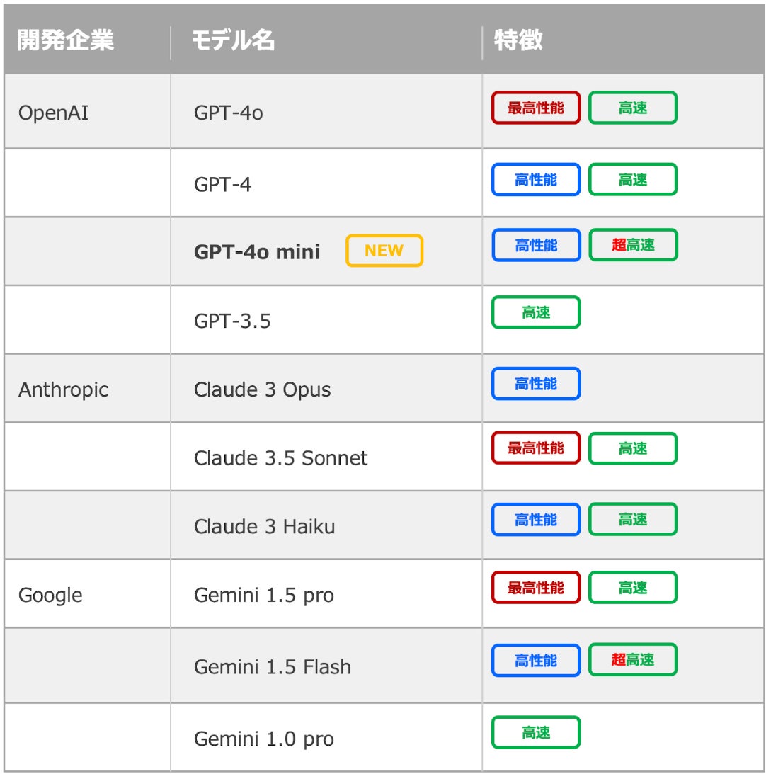 OpenAI社の最新モデル「GPT-4o」を軽量化したモデルで、高速かつ高性能な処理が可能です。 -