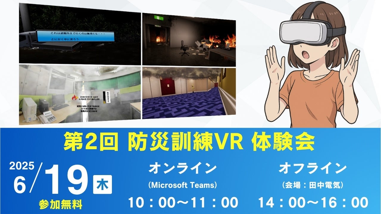 田中電気株式会社(本社:東京都千代田区、代表取締役社長:田中良一)は、2025年6月19日(木)に第2回「防災訓練VR体験会」をオンラインとオフラインの両形式で開催いたします。