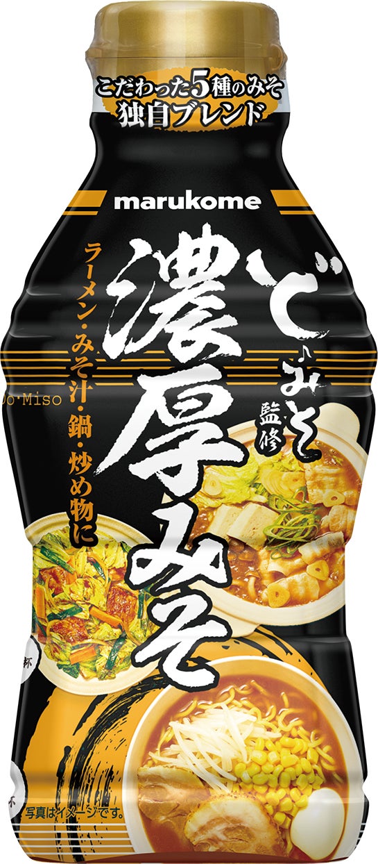 当社は液状タイプのみそ、液みそを2009年3月から業界に先駆けて発売してきました。だし入りやとん汁専用など充実したラインアップで、液みそカテゴリーは前期比107.2%を記録※1するなど拡大傾向にあります。生みそと併用される方の用途では炒め物や和え物、ドレッシングなど、みそ汁以外でのメニューに使われている※2ことから、液みそもめんつゆのような万能調味料としての進化をみせています。そして今回、東京の京橋に本店を構え、グルメサイトでも高評価で話題の人気味噌らーめん専門店「ど・みそ」監修の濃厚みそを液みそシリーズの新商品として発売します。「ど・みそ」同様、5種類の味噌を使用することで奥深い味わいになりました。鶏、豚、鰹、煮干だしと花椒(ホアジャオ)に麦芽エキスを合わせることで、「ど・みそ」も太鼓判を押す商品に仕上がりました。ラーメンや鍋はもちろん、野菜炒めや炒飯など、味つけはこれだけで手軽にがっつり飯が楽しめます。