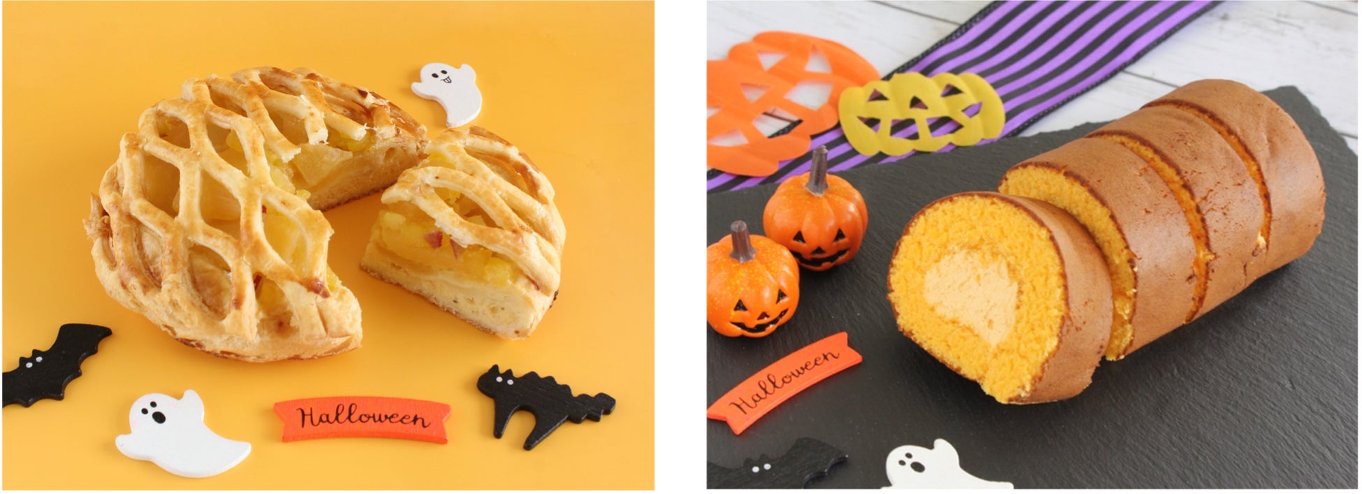 ハロウィン限定スイーツが新登場!旬のりんごと鳴門金時芋をふんだんに使った「りんごとお芋のパイ」かぼちゃの優しい甘みが口いっぱいに広がる「かぼちゃのロールケーキ」