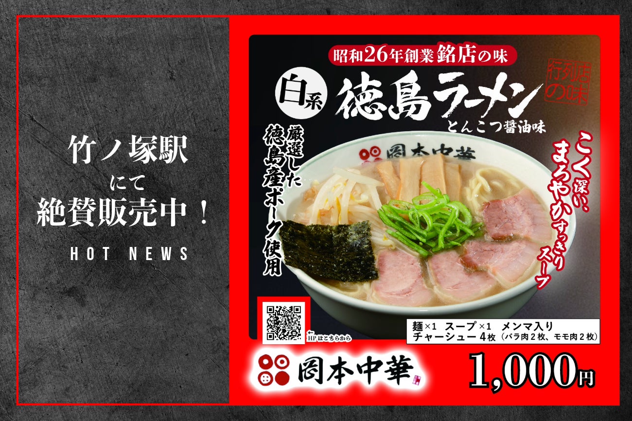 【広告宣伝費のみ】 駅ナカや大手商業施設で次世代自販機があなたの商品を引き立てる!60年以上愛され続ける、徳島ラーメンの真髄『岡本中華』が竹ノ塚駅にて3/1より販売を開始しています