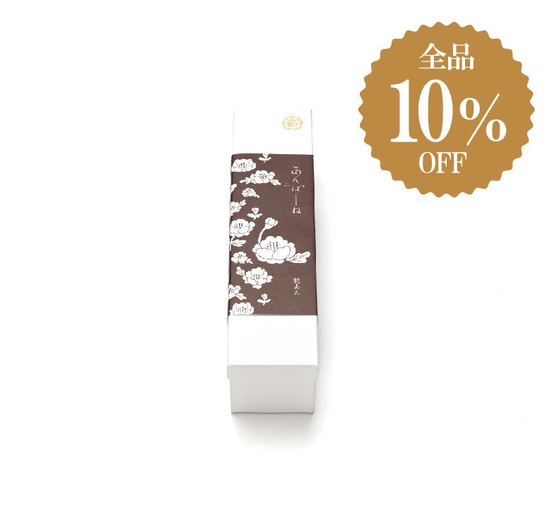 お客様に日頃の感謝の気持ちを込めて、あのん銘菓「あんぽーね粒10枚入(5組)」(通常価格税込1,944円)を、先着100個限定で税込1,080円にてご提供。