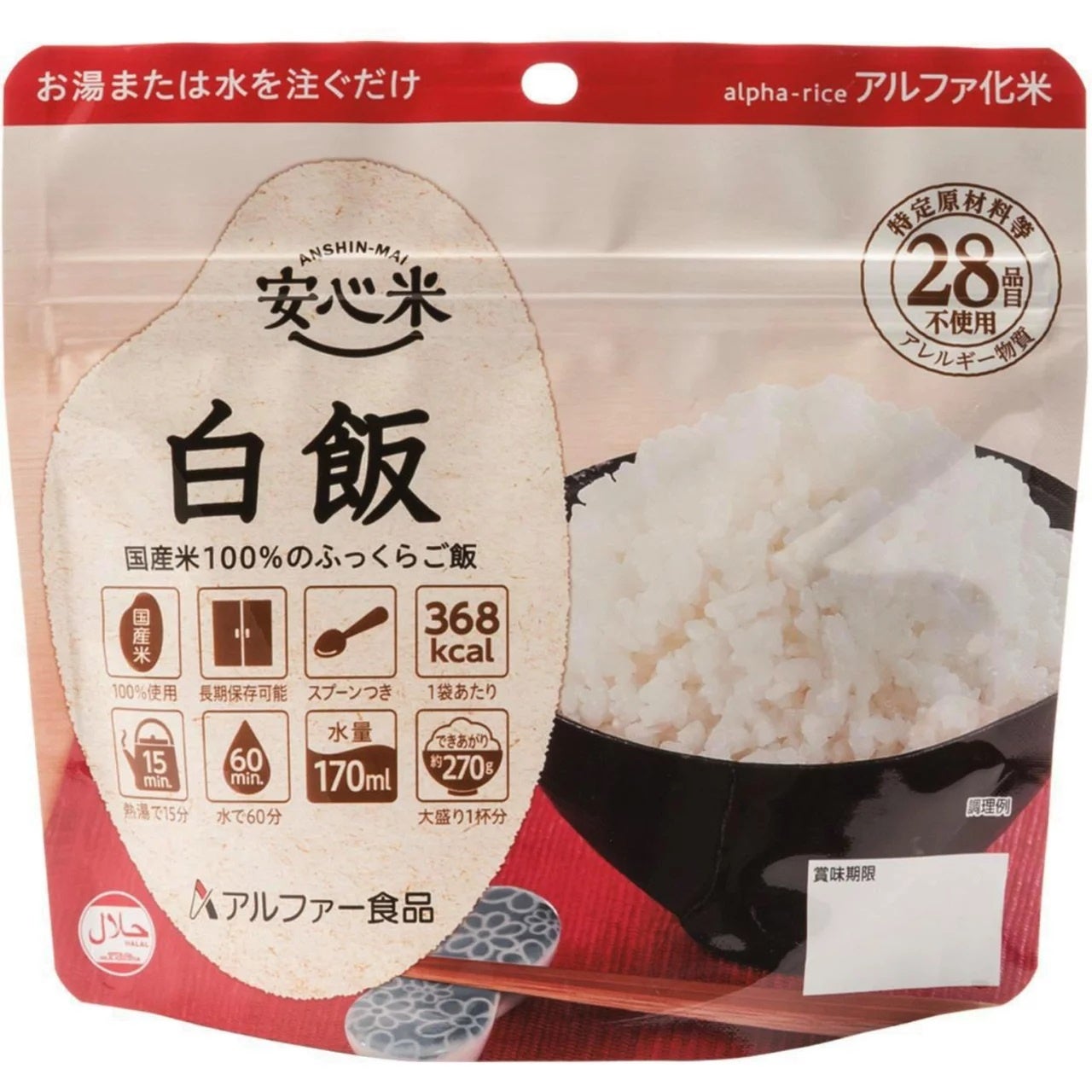 特 長:熱湯や水を注ぐだけで簡単にご飯ができあがる優れた商品です。保存期間は5年と長く、非常用袋に入れておけば、非常時などいざという時の『あってよかった!』に備えておけます。スプーンも入っているので食器の準備もいりません。