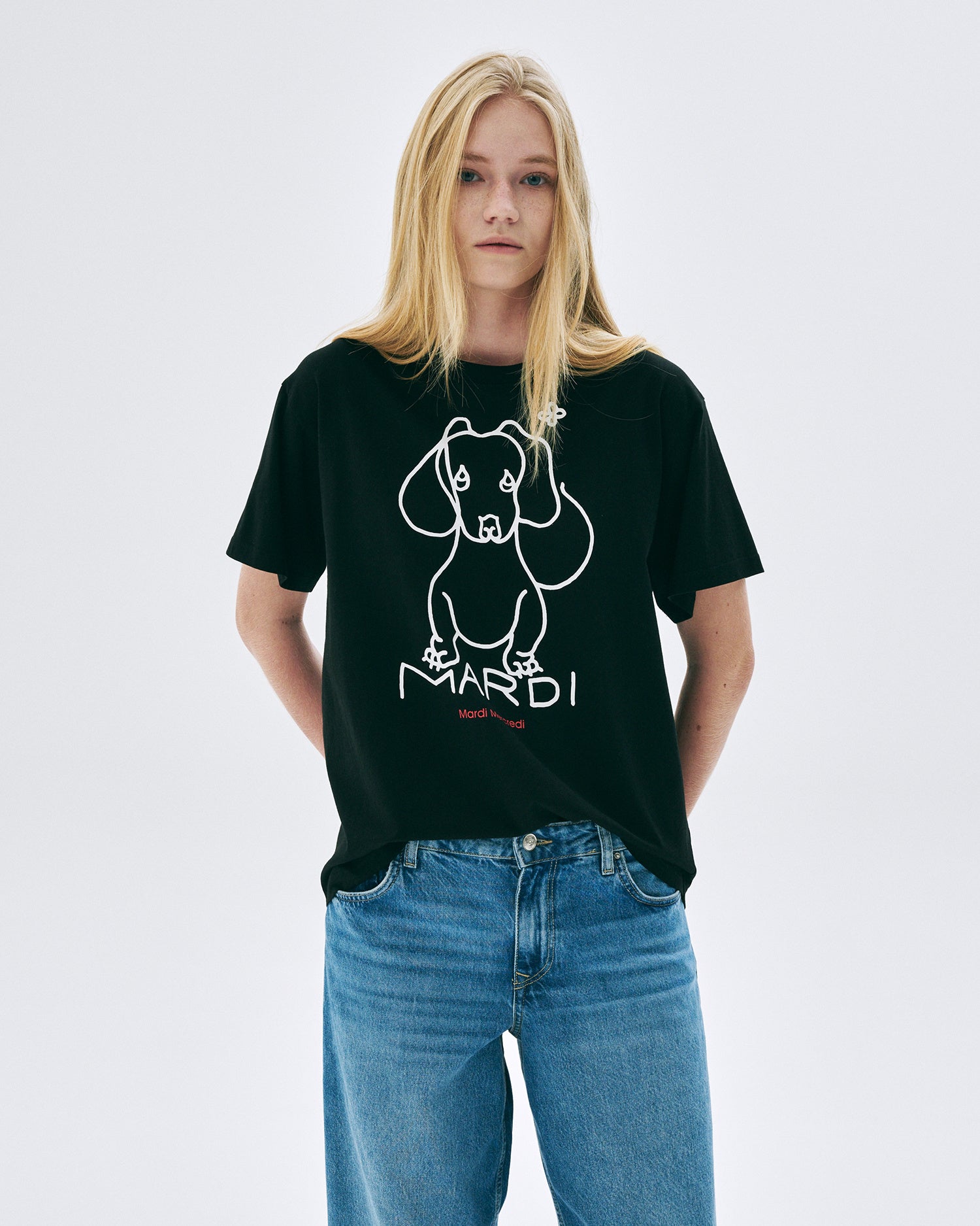 「DDANJI(ダンジ)」は、Mardi Mercredi創業者夫妻が飼っていた愛犬のダックスフント「DDANJI」をモチーフにした、ブランドの象徴的なグラフィック。